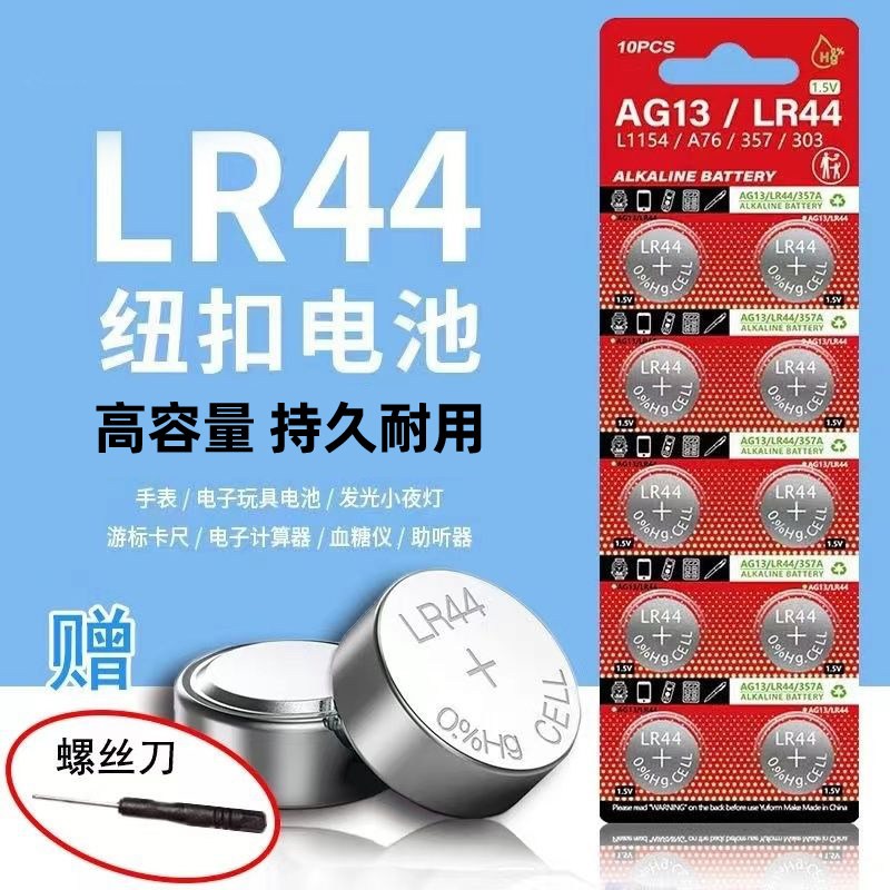 LR44纽扣电池AG13/A76 L1154 357a电子手表玩具遥控器计算机sr44wh小型号1.5v伏碱性通用式游标卡尺