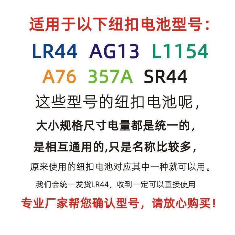 LR44纽扣电池A76手表卡尺血糖仪L1154玩具AG13助听器电子A675
