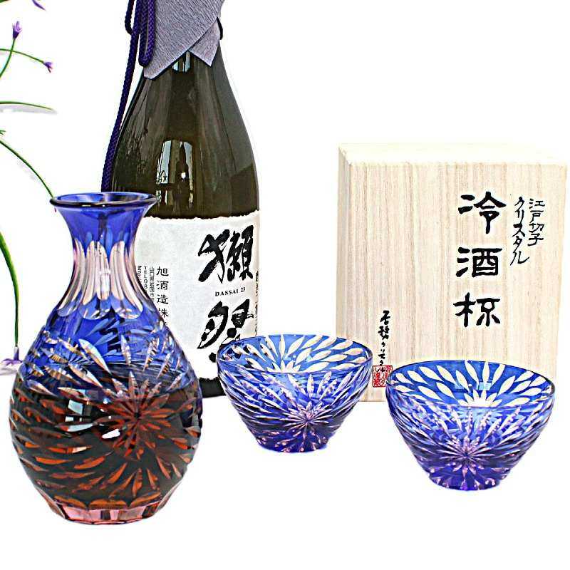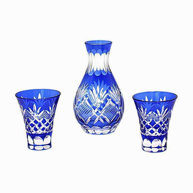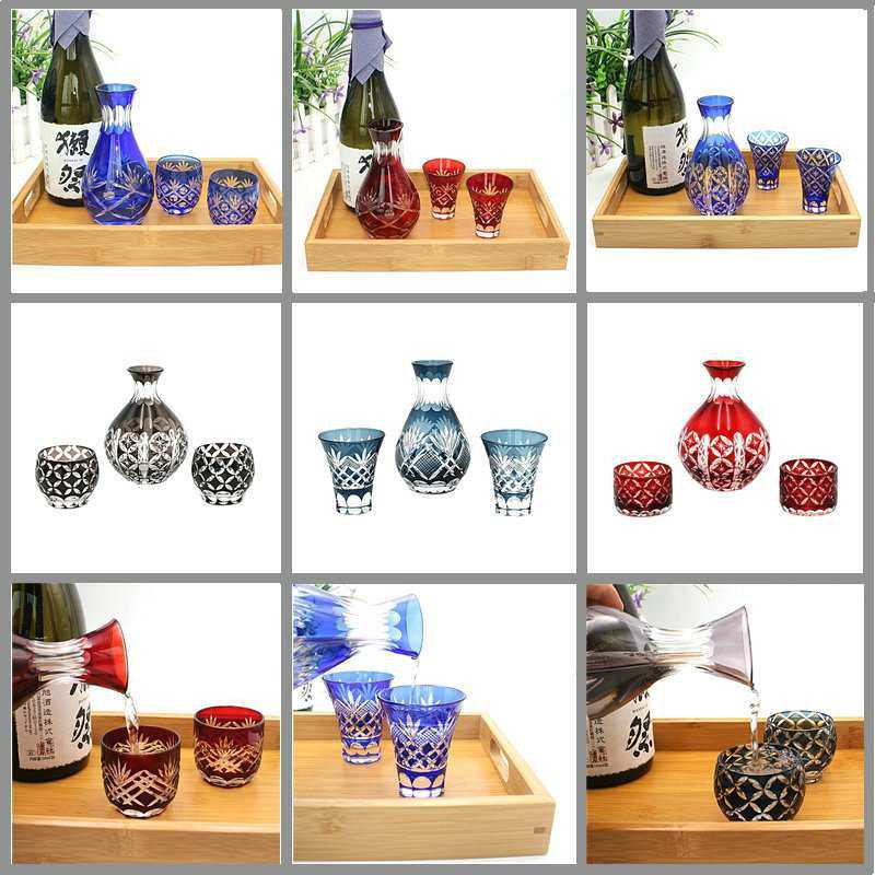 日式清酒壶清酒杯手工刻花玻璃分酒器日本江户切子工艺一壶二杯