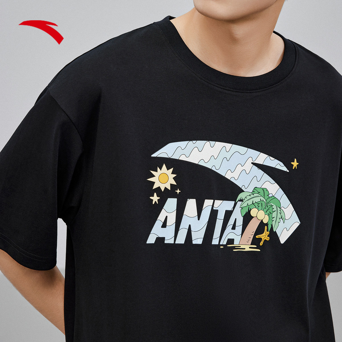 安踏大LOGO印花短袖t恤男女情侣款秋季宽松潮流休闲百搭运动上衣