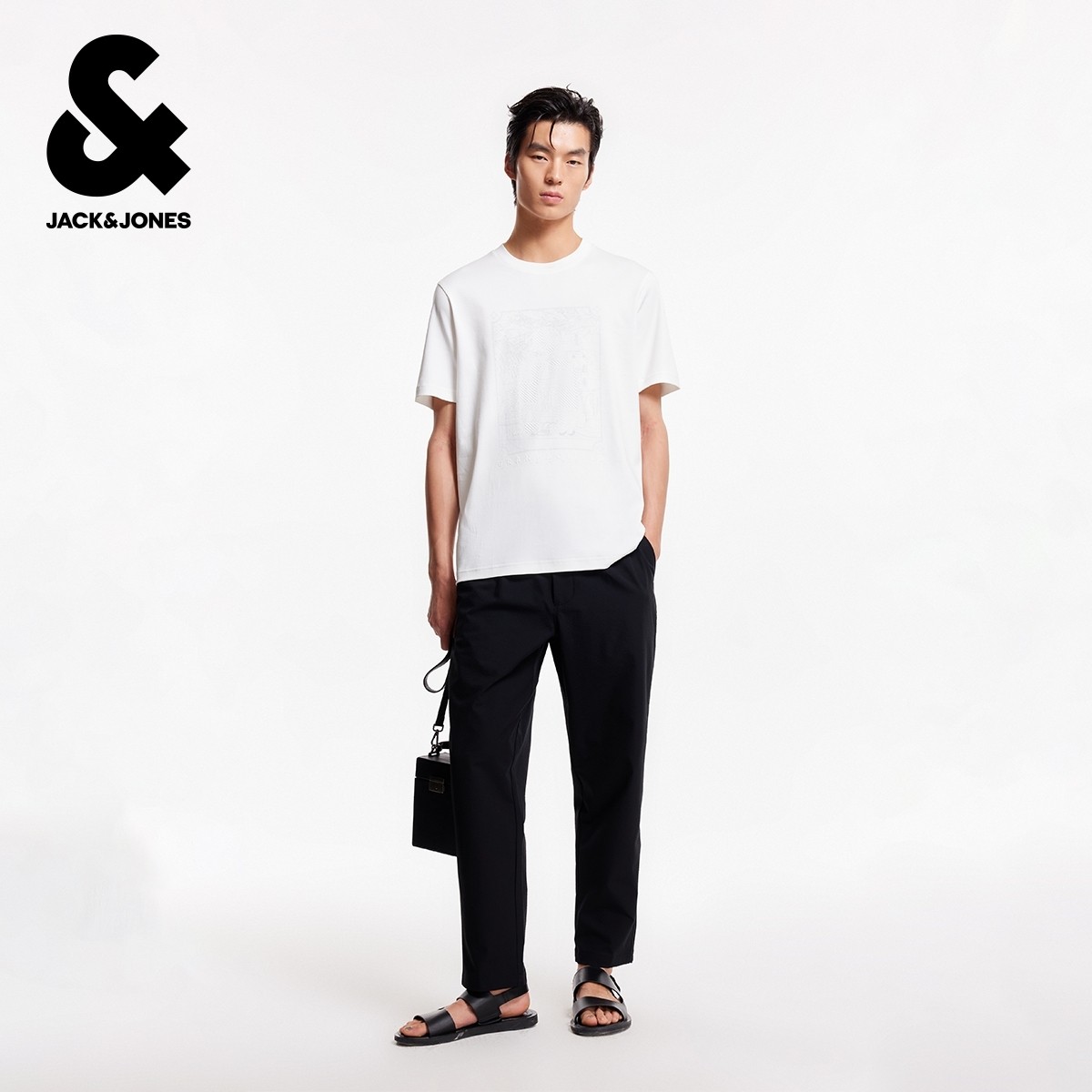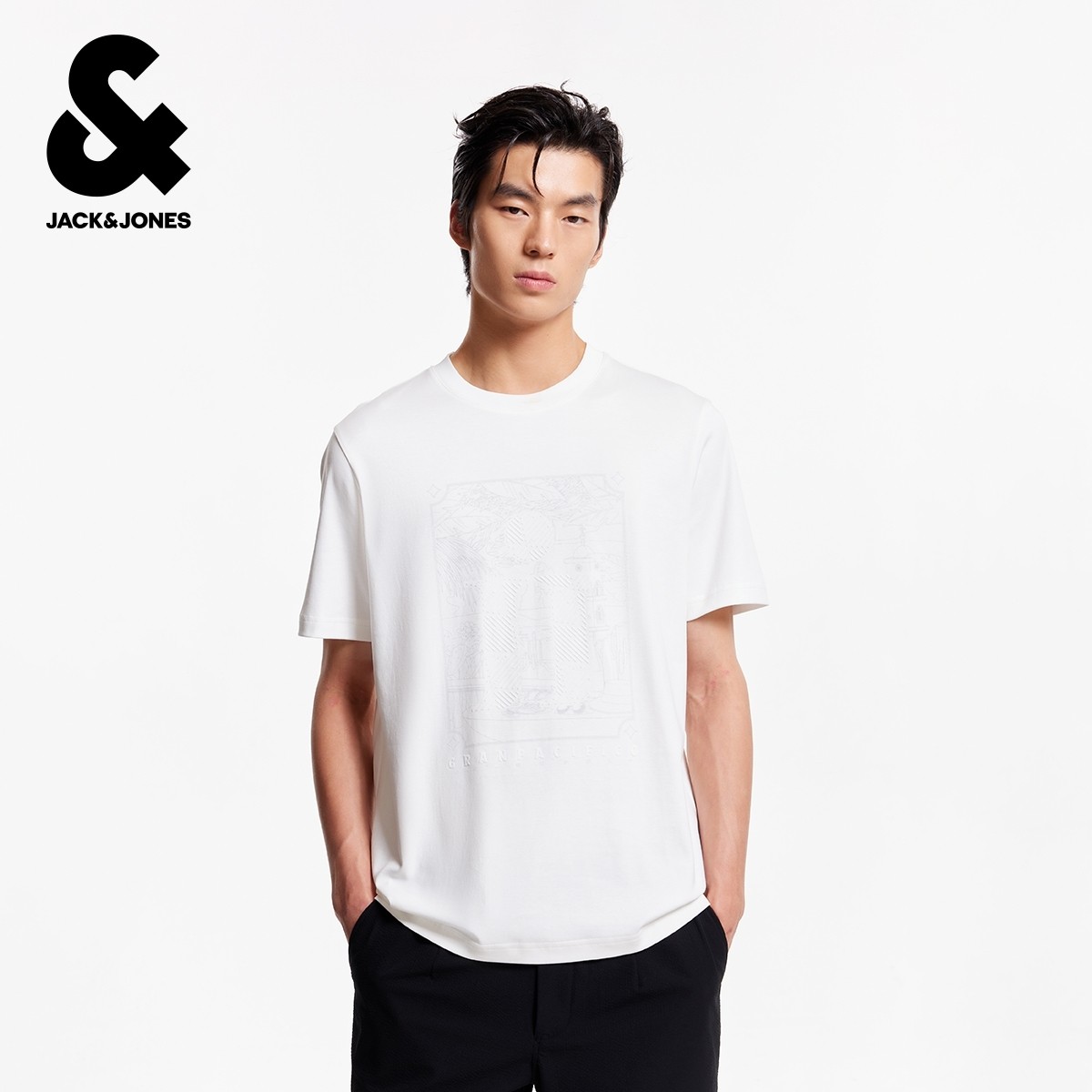 杰克琼斯男装T恤秋季新款经典流行印花纯色圆领休闲全棉短袖上衣