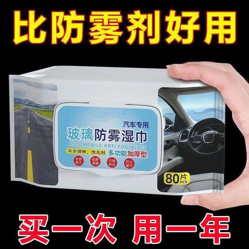 冬季汽车玻璃防雾湿巾车内防起雾车窗前挡风后视镜防雨除雾剂神器
