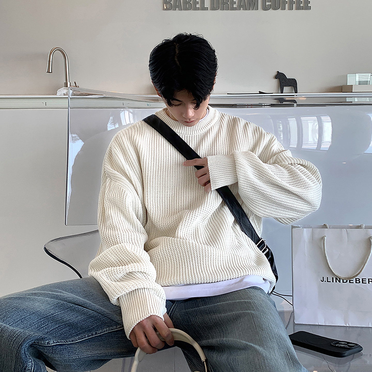 碧舍松弛感通勤纯色毛衣软糯原宿学生针织衫小众宽松高级圆领打底