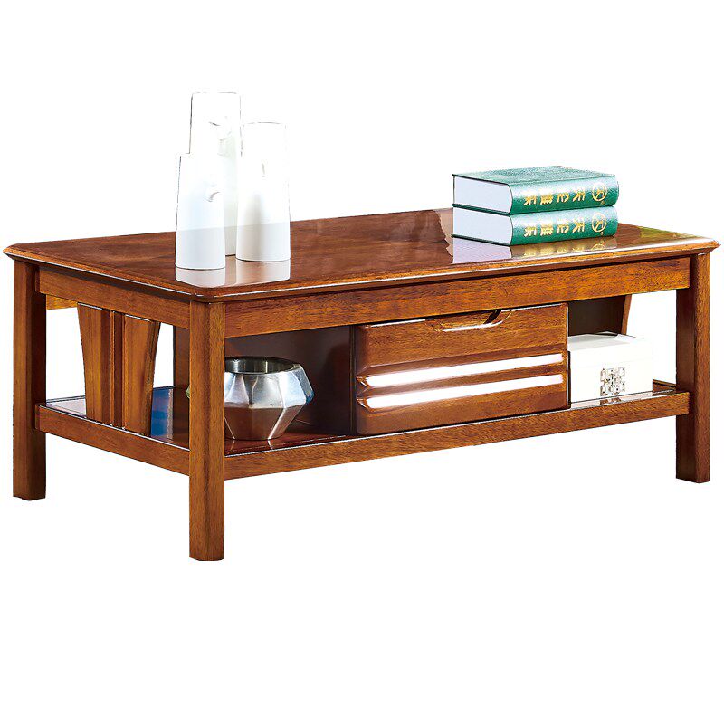 全实木茶几客厅家用长方形小户型胡桃木现代中式简约带抽屉储物