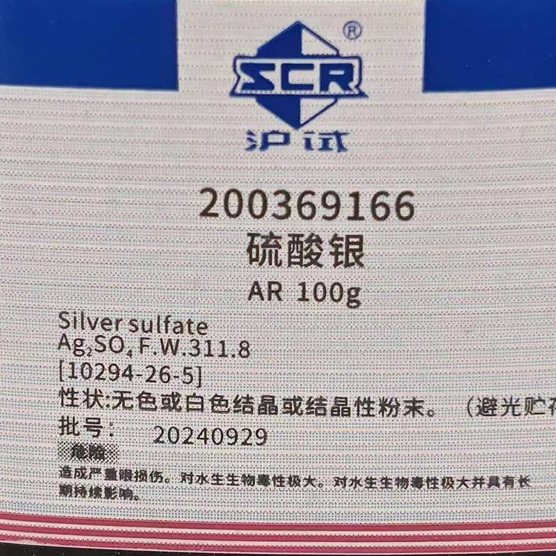 国药沪试 硫酸银 分析纯AR100gGR25g 化学试剂CAS10294-26-5