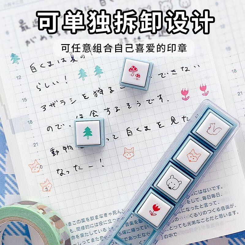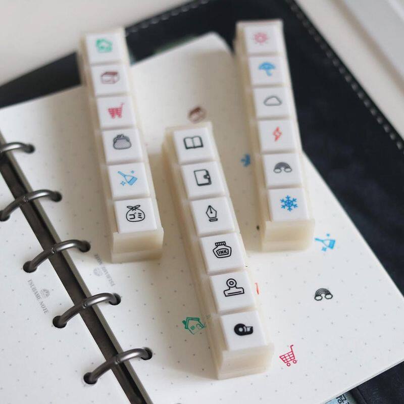 日本KODOMO NO KAO童颜六联按键浸透手账印章Pochitto6迷你小图章可爱卡通图标日程本计划本打卡日程管理天气