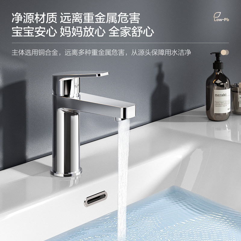 恒洁卫浴铜材冷热双控面盆龙头家用洗脸盆卫生间洗面盆水龙头900