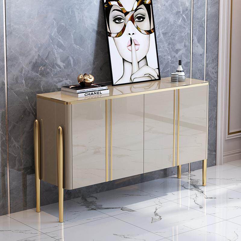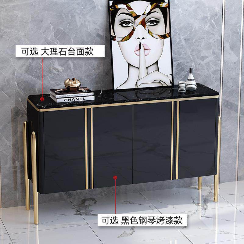 轻奢玻璃面板餐边柜茶水柜不锈钢后现代简约整装艺术四门置物柜