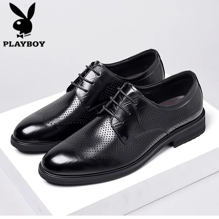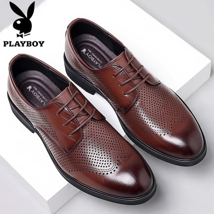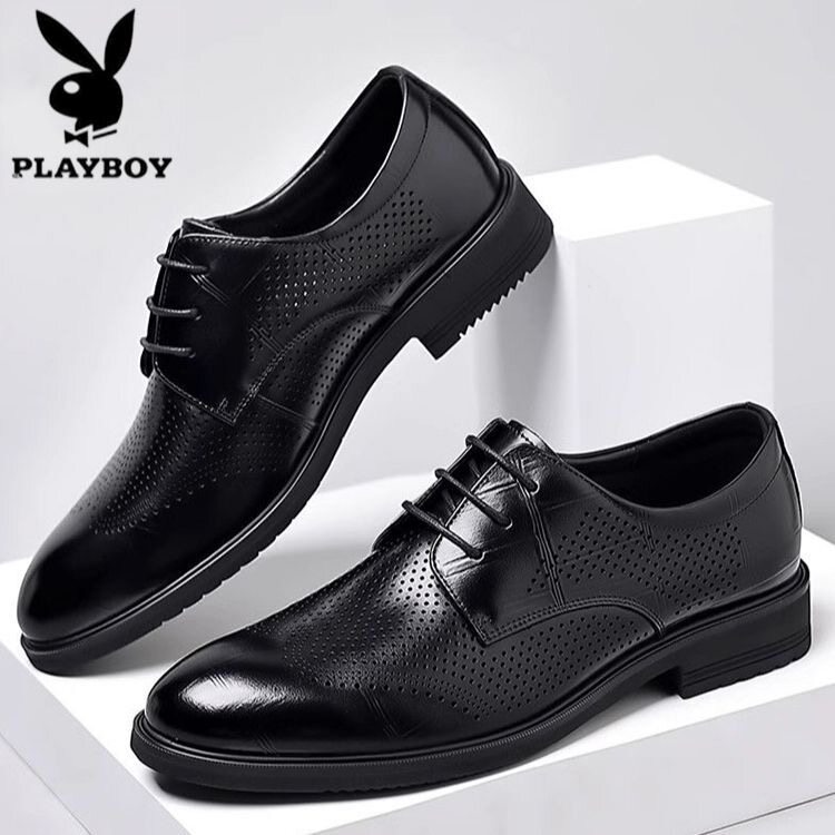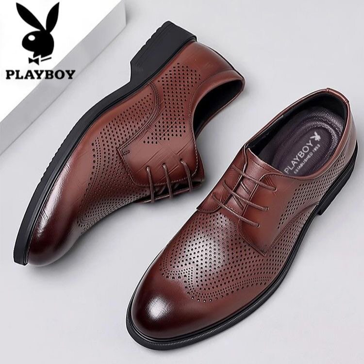 花花公子皮鞋男2026新款夏季透气商务正装真皮休闲韩版男镂空凉鞋