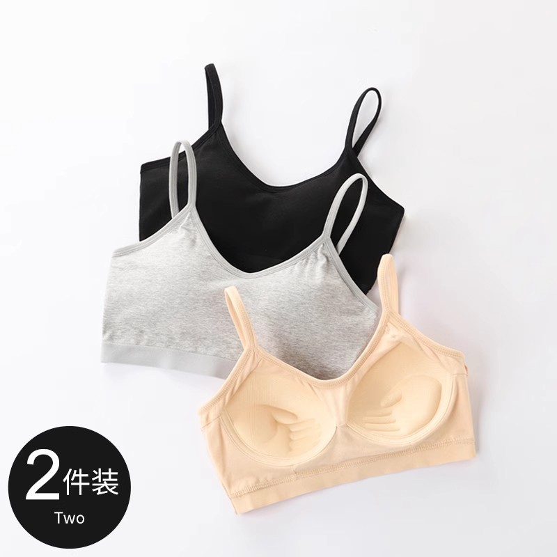 纯棉背心一体bra固定杯垫吊带裹胸聚拢文胸免美背学生穿少女抹胸