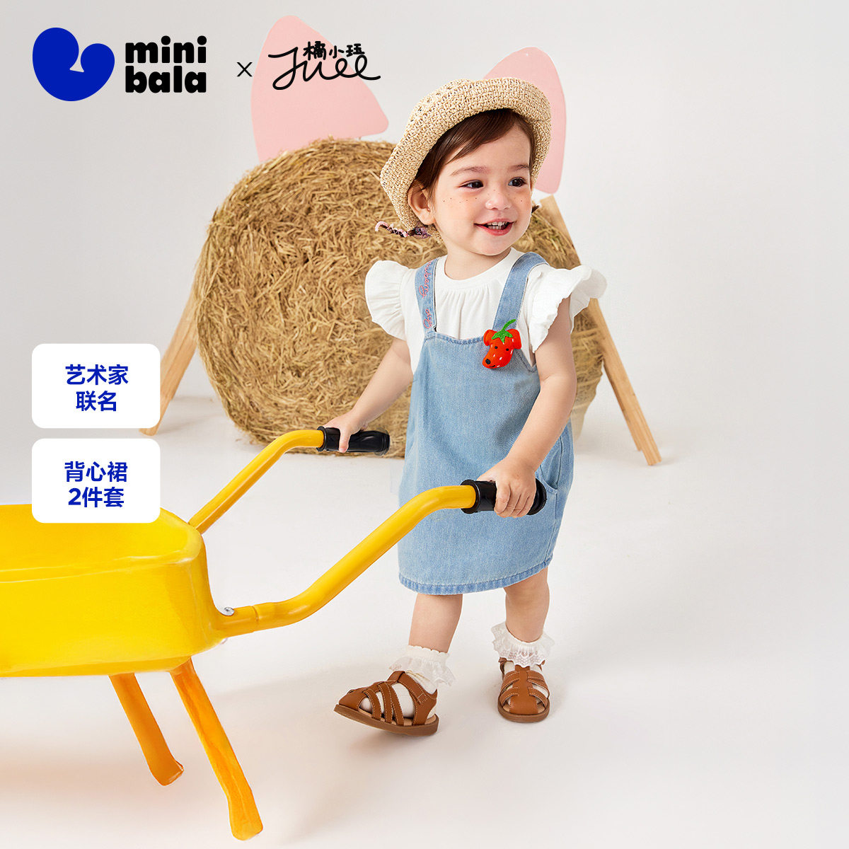 迷你巴拉巴拉短袖套装连衣裙女童宝宝背带裙透气纯棉甜美背带裤