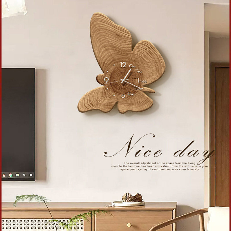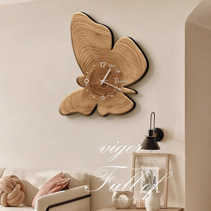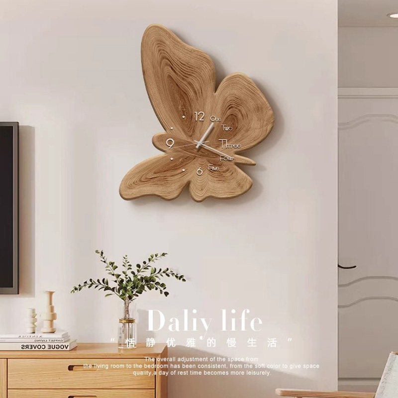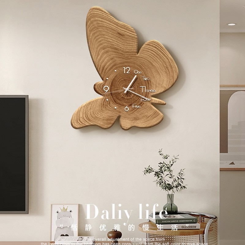 侘寂风客厅装饰画挂钟原木风电视背景墙钟表时钟挂墙复古艺术挂画
