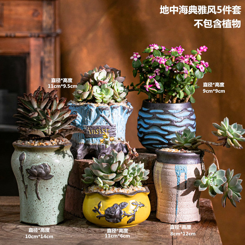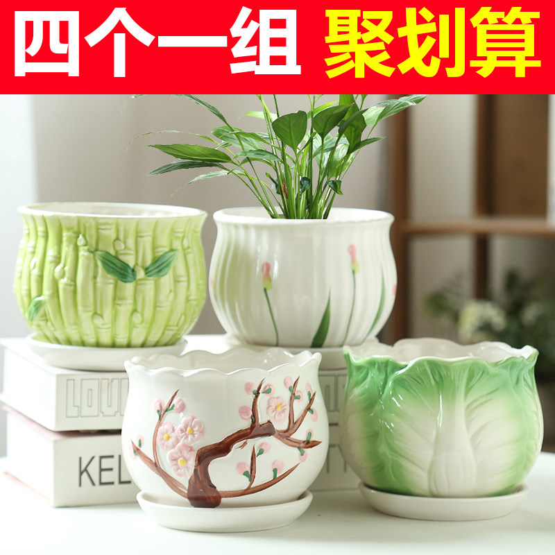多肉花盆陶瓷带托盘特价清仓大号大口径多肉植物绿植鲜花发财树盆