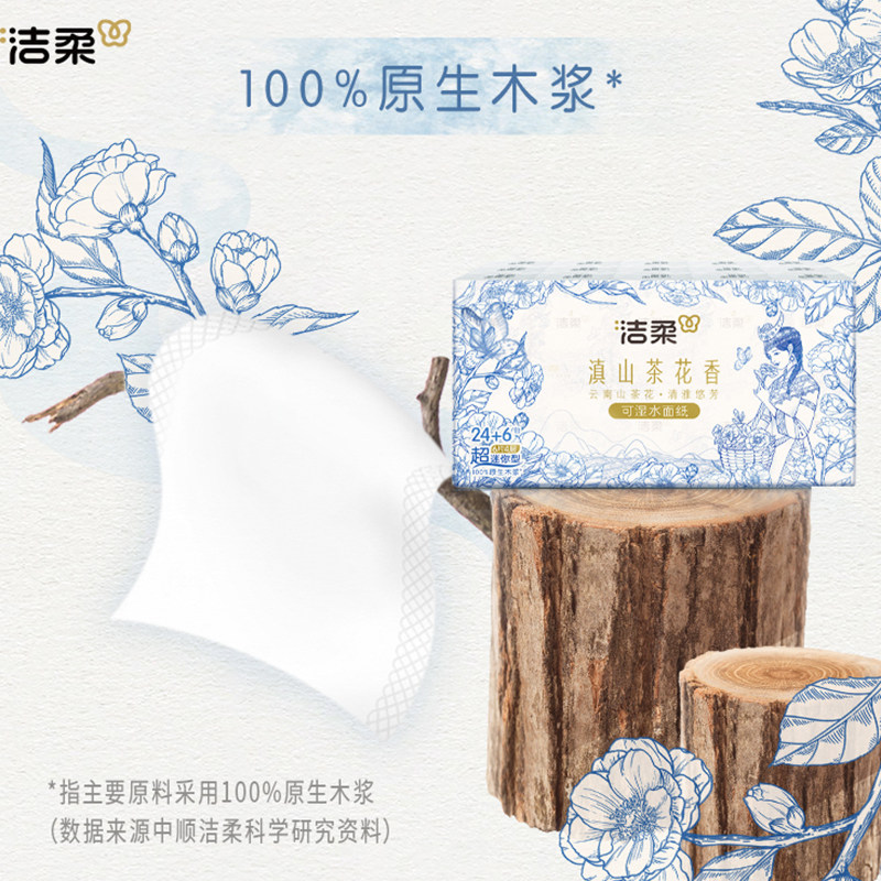 洁柔滇山茶香手帕纸小包擦手纸随身装便携式面巾纸干湿两用卫生纸
