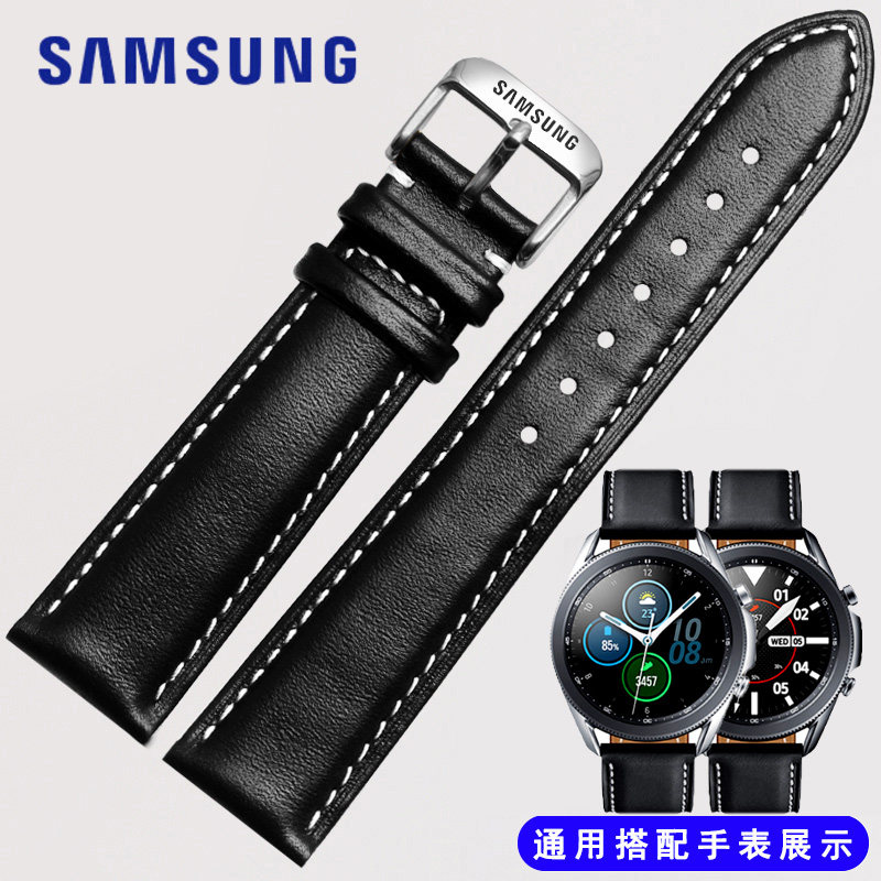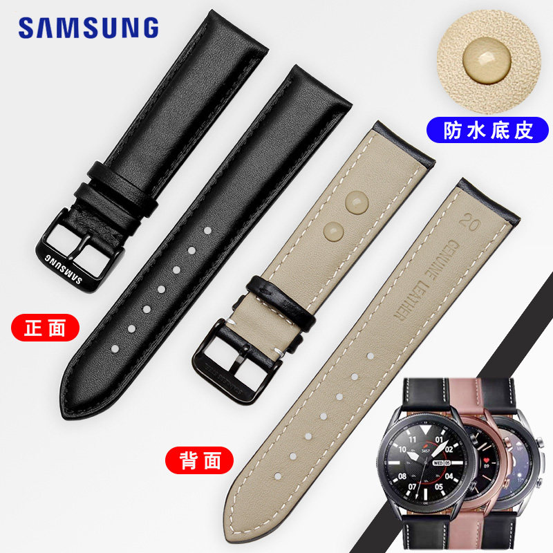 三星gear s3/S2/sport s4智能手表带牛皮黑色运动款22mm针扣表带