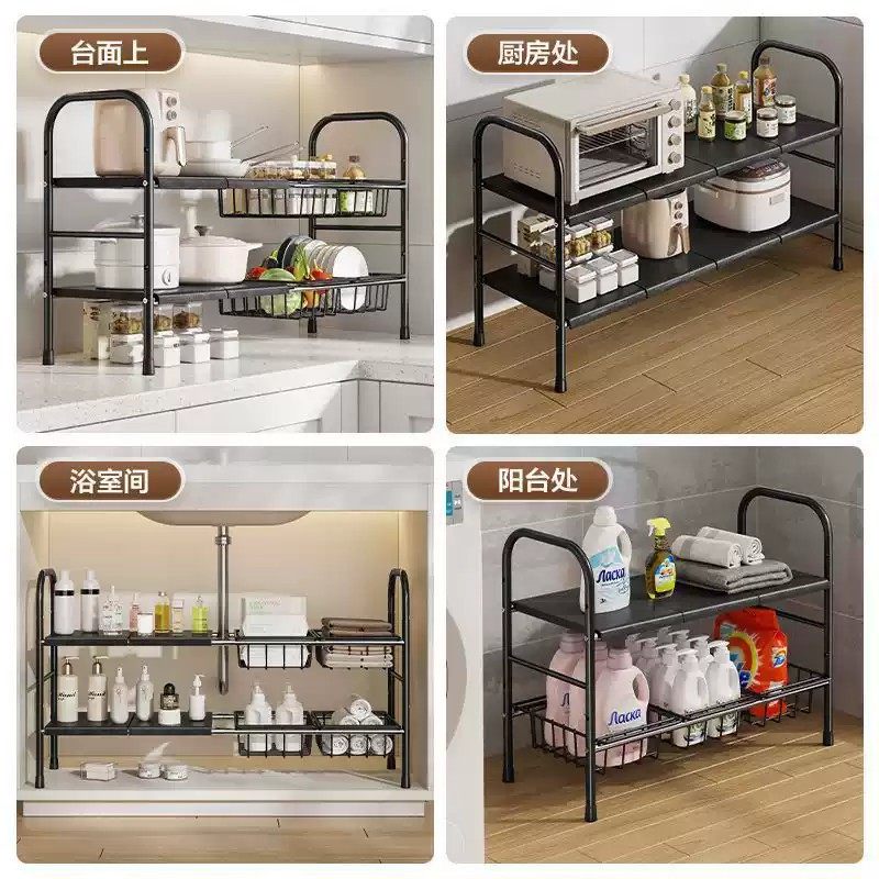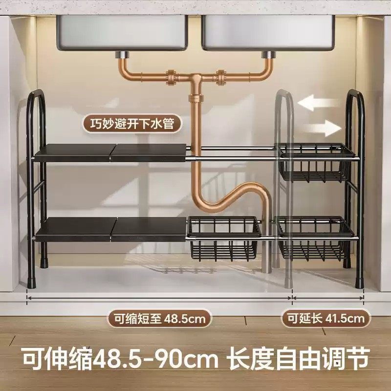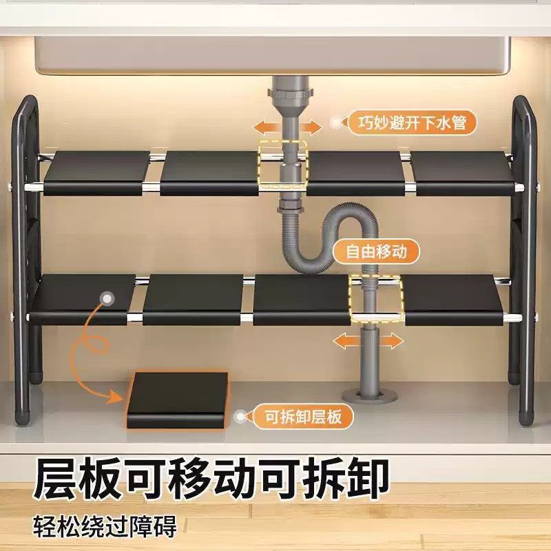 可伸缩厨房下水槽置物架家用橱柜内柜子分层架洗手台下多层收纳架