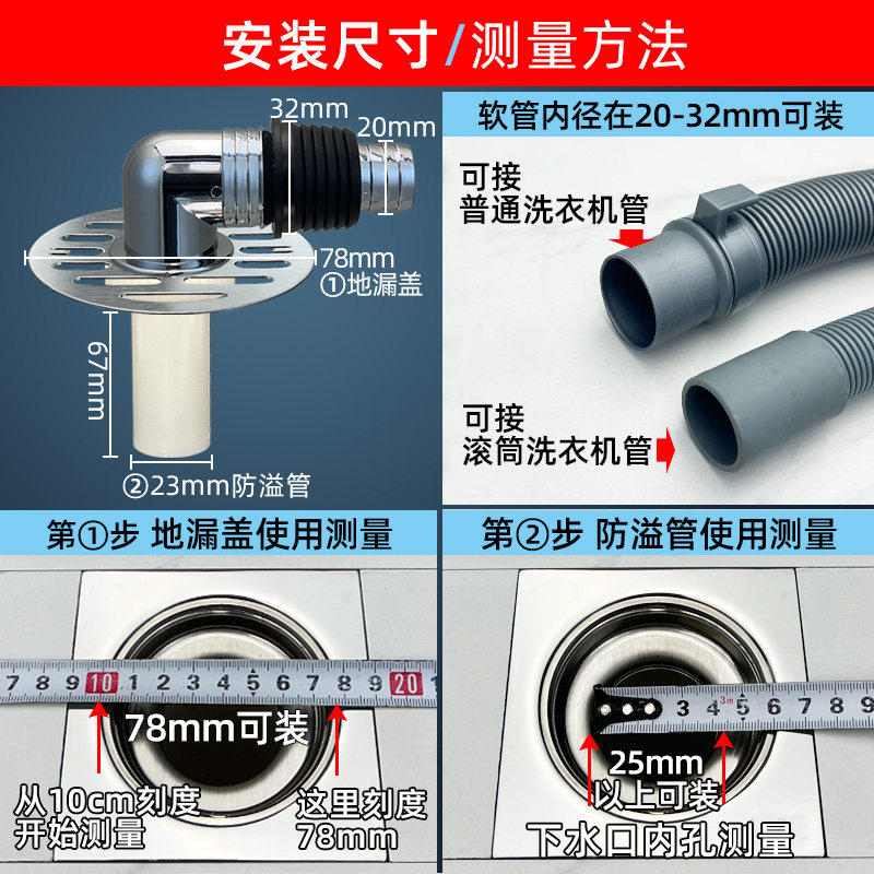 洗衣机地漏专用接头下水排水管道防反溢水二合一三通方形地漏盖子