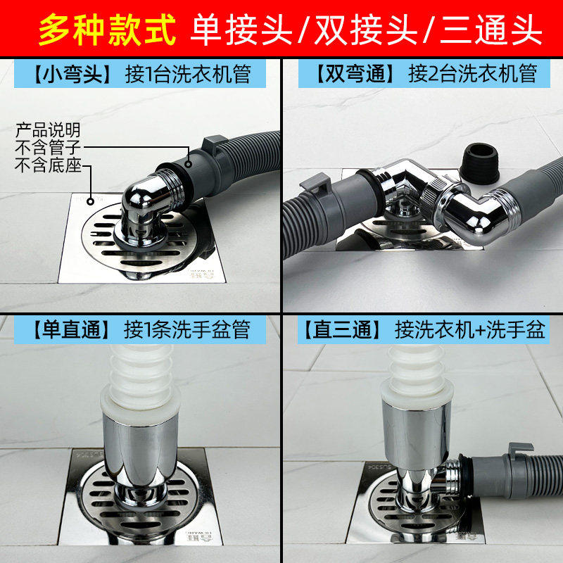 洗衣机地漏专用接头排水管下水管道三头通四头通五两用防臭多功能