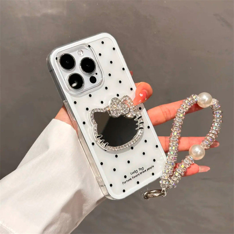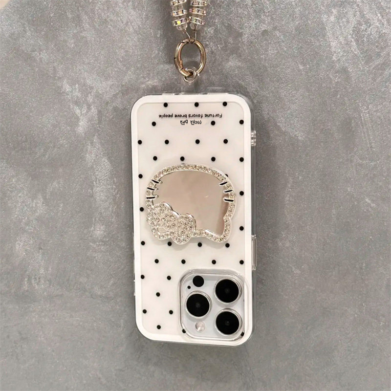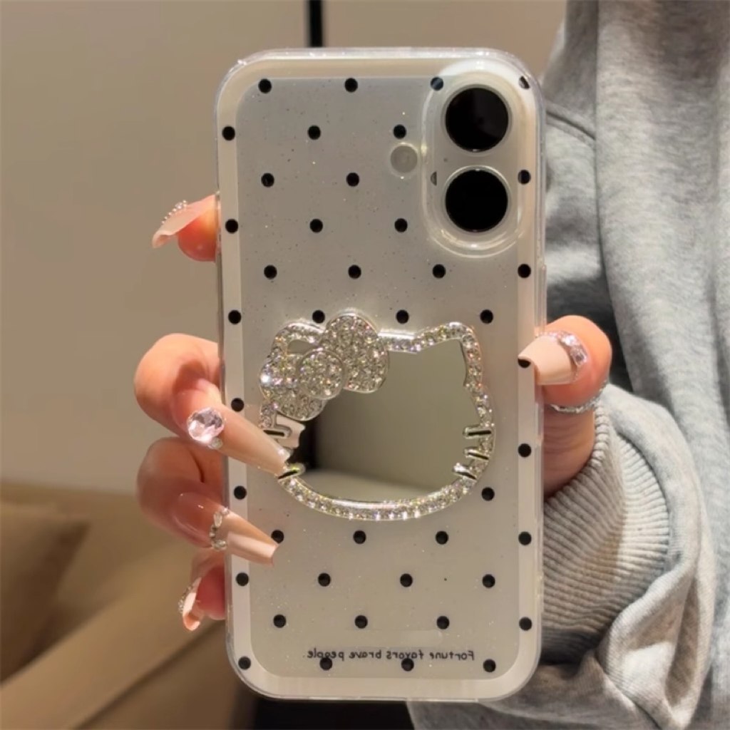 闪粉ins日韩立体小猫咪镜子挂绳适用苹果16promax手机壳iphone13新款15pro女款14少女可爱12卡通创意11全包软