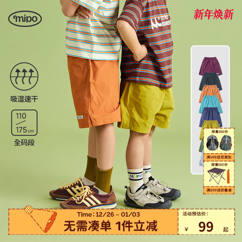 【口袋速干短裤】mipo夏季儿童裤子亲子装一家三口男女童运动宽松
