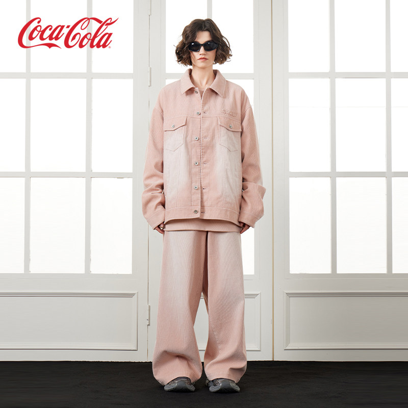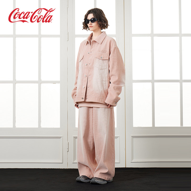 Coca-Cola/可口可乐灯芯绒夹克直筒裤子休闲运动套装男女同款