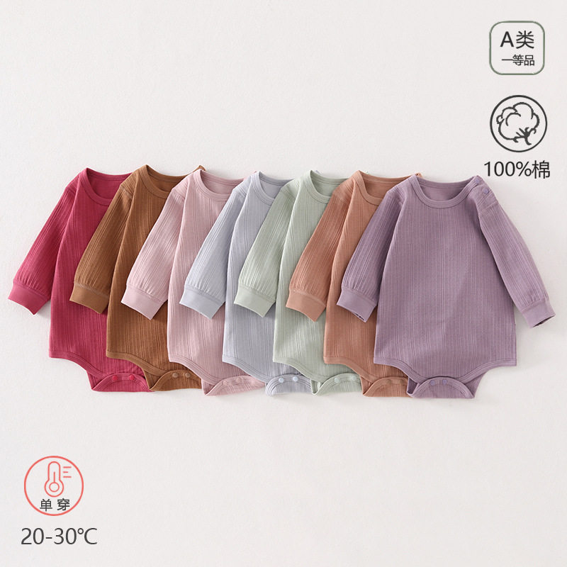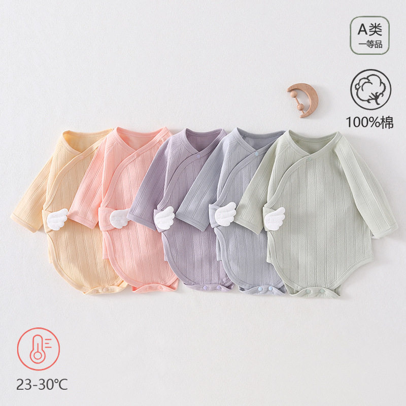 新生儿纯棉包屁衣男女宝宝长袖连体衣提花哈衣婴儿A类无骨衣母婴