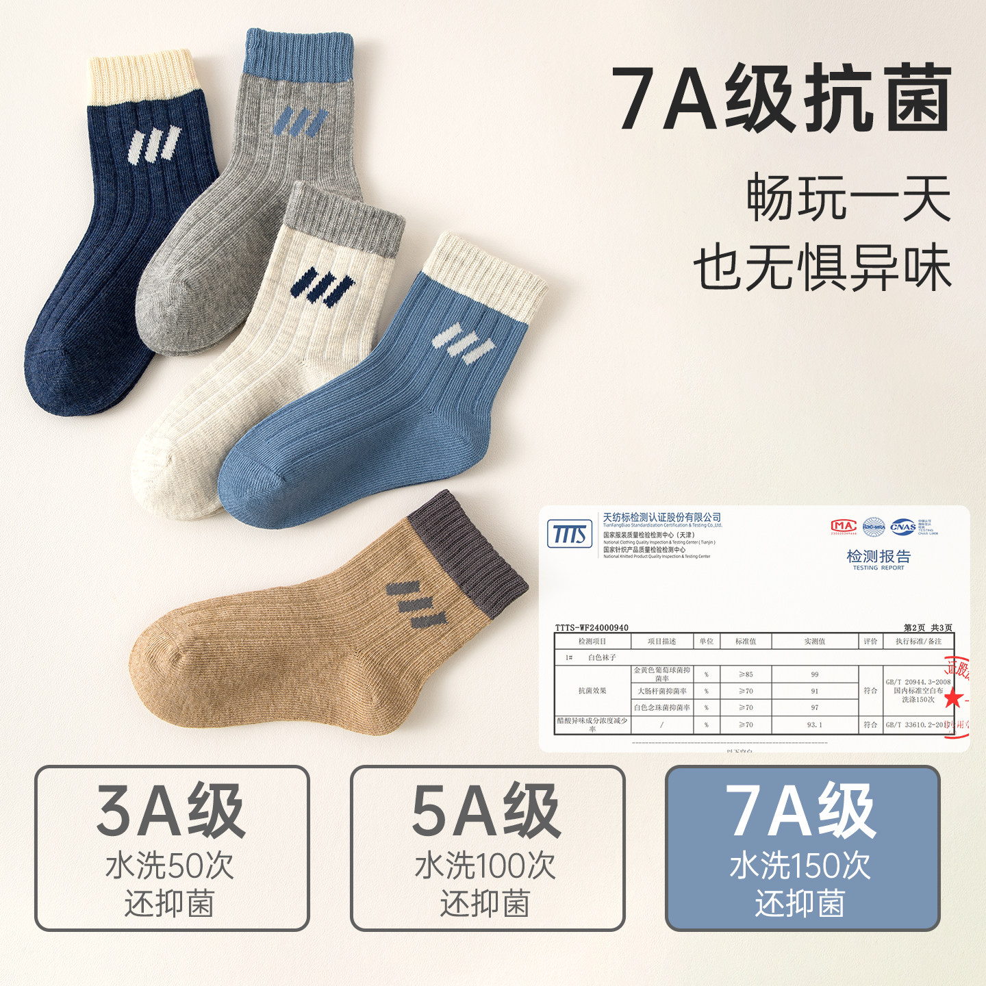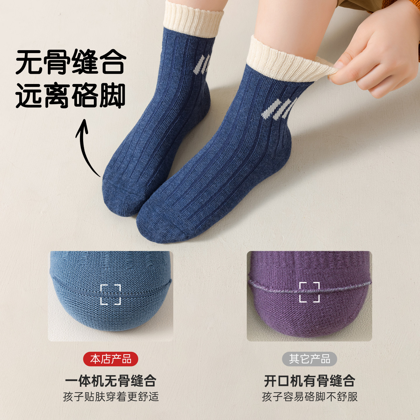 无骨抗起球抗菌防臭棉袜秋冬季儿童袜子透气吸汗纯色百搭学生潮袜