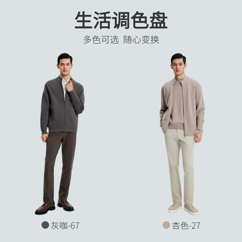 【羊毛开衫】金利来秋冬男士宽松毛衣针织夹克外套拉链立领羊毛衫
