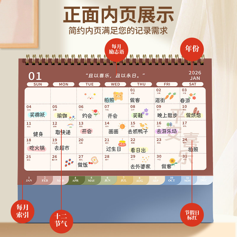台历2026年新款日历定制logo创意简约小清新韩式办公年历个性中国风桌面摆件商务工作记事计划本订制广告月历