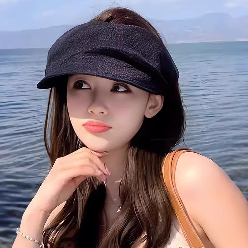 2026新款网纱帽子褶皱黑色空顶防晒帽女夏季防晒遮阳帽出游太阳帽