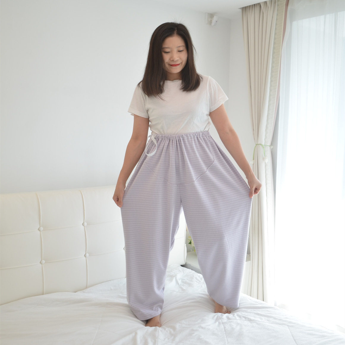 大码棉绸睡裤女夏人造棉薄款绵绸灯笼裤可外穿防蚊裤度假沙滩长裤