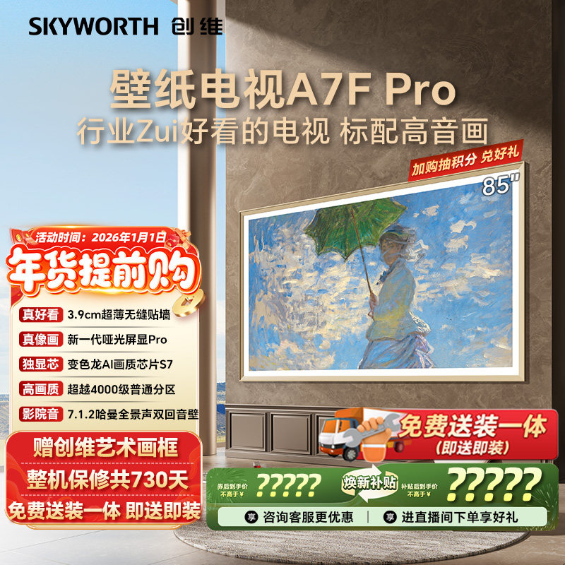 创维壁纸电视A7F Pro 85英寸超薄壁画艺术Mini LED电视机换新补贴