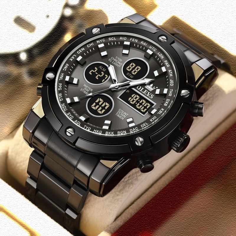 瑞士新款电子双显多功能大气运动学生高中计时男士手表大表盘夜光