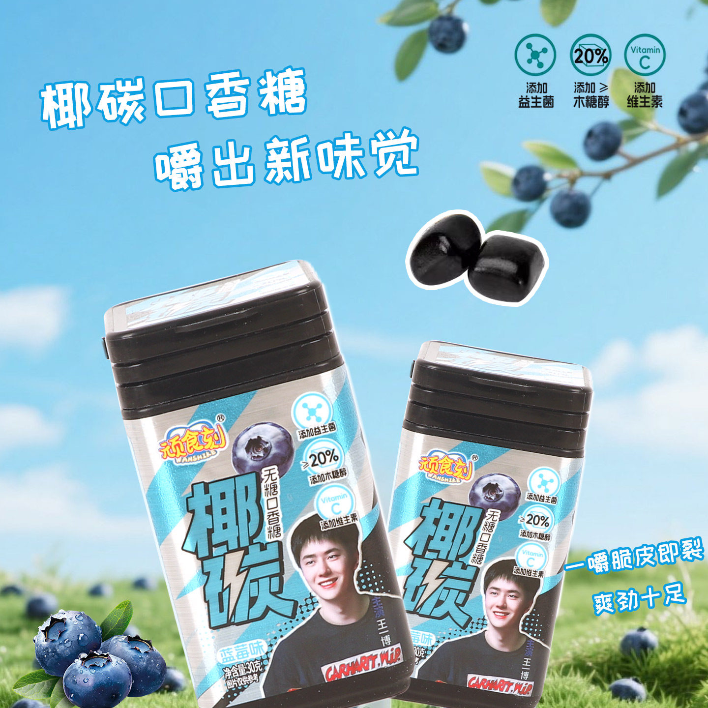 无糖口香糖椰炭维C多种口味清新口气木糖醇口香糖薄荷糖脆皮盒装