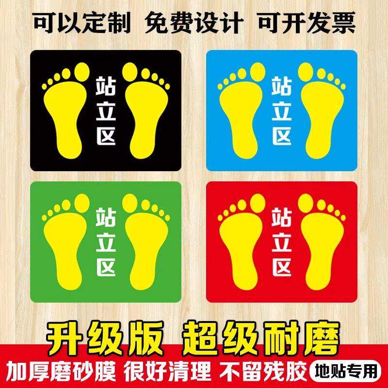 站立区地板车标贴识牌贴纸请站此处脚丫地板贴学校工厂车间排队站位体检定位定点标识PVC防水耐磨脚印定制