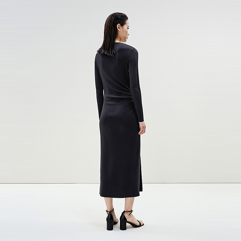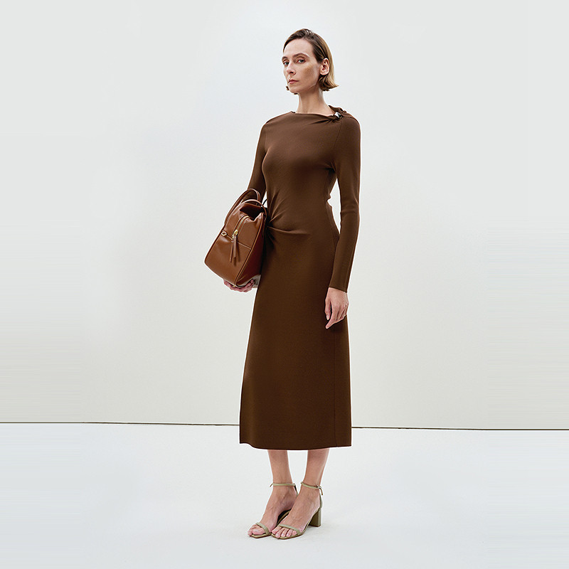 【精工系列】LESS春收腰不对称长裙一字领针织连衣裙2P2G13100