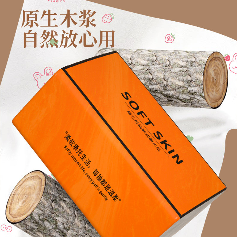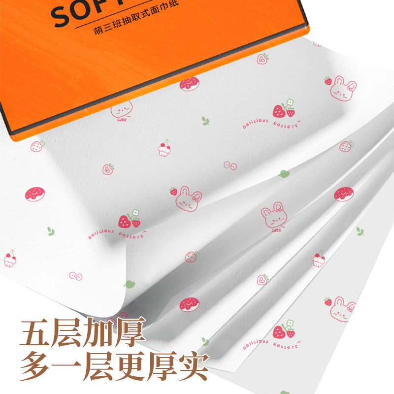 萌三班宿舍餐巾纸抽纸纸抽五层柔厚原生木浆家庭耐用抽取式卫生纸
