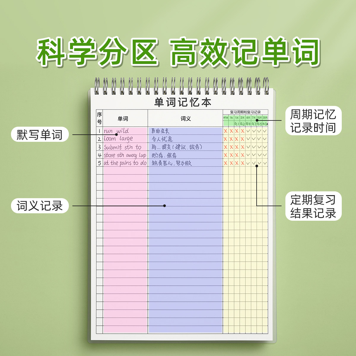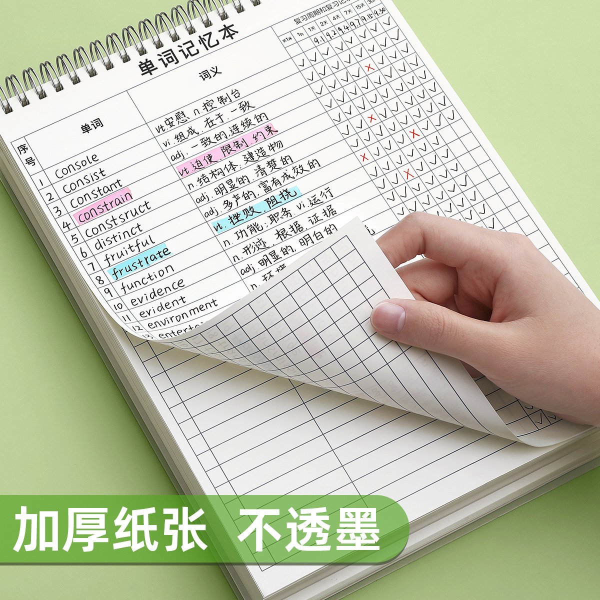 英语单词本默写本记忆艾宾浩斯遗忘曲线记背神器积累考研大学生纸便携式学习笔记本子初高中背诵听写速记活页