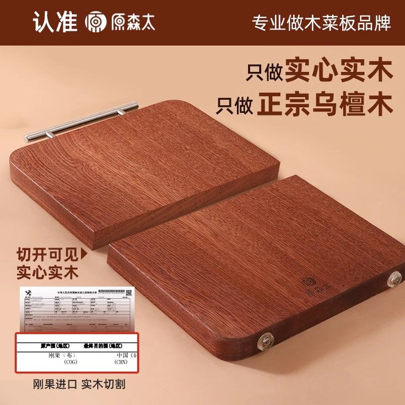 原森太实木菜板乌檀木抗菌防霉家用砧板厨房专用双面切菜案板粘板