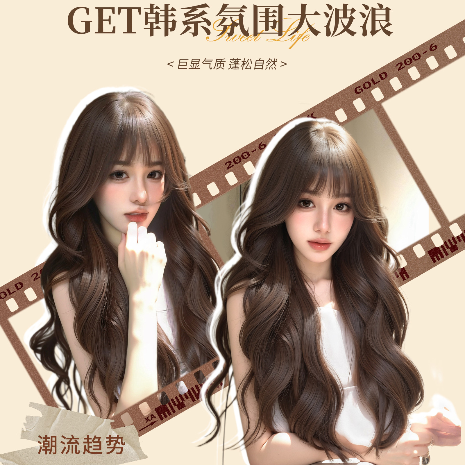 假发全头套女发丝无痕齐刘海大波浪长卷发假发套长发隐形圆脸中分