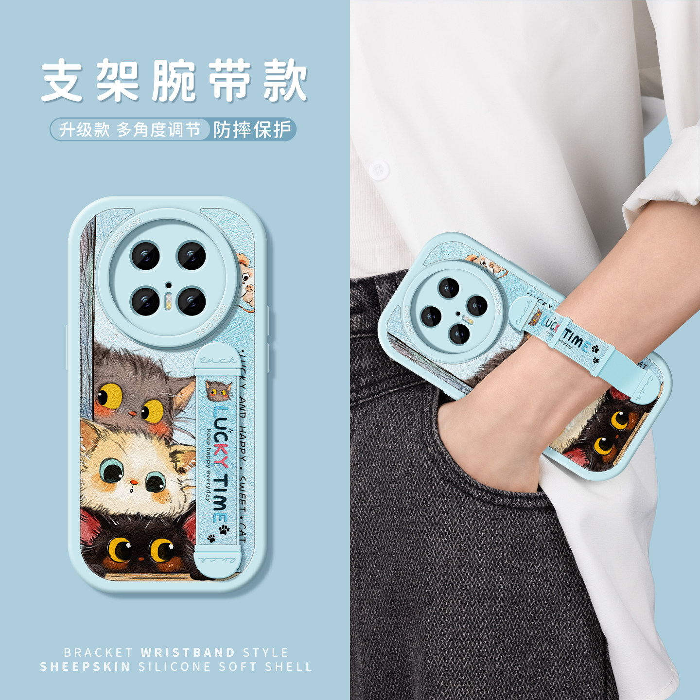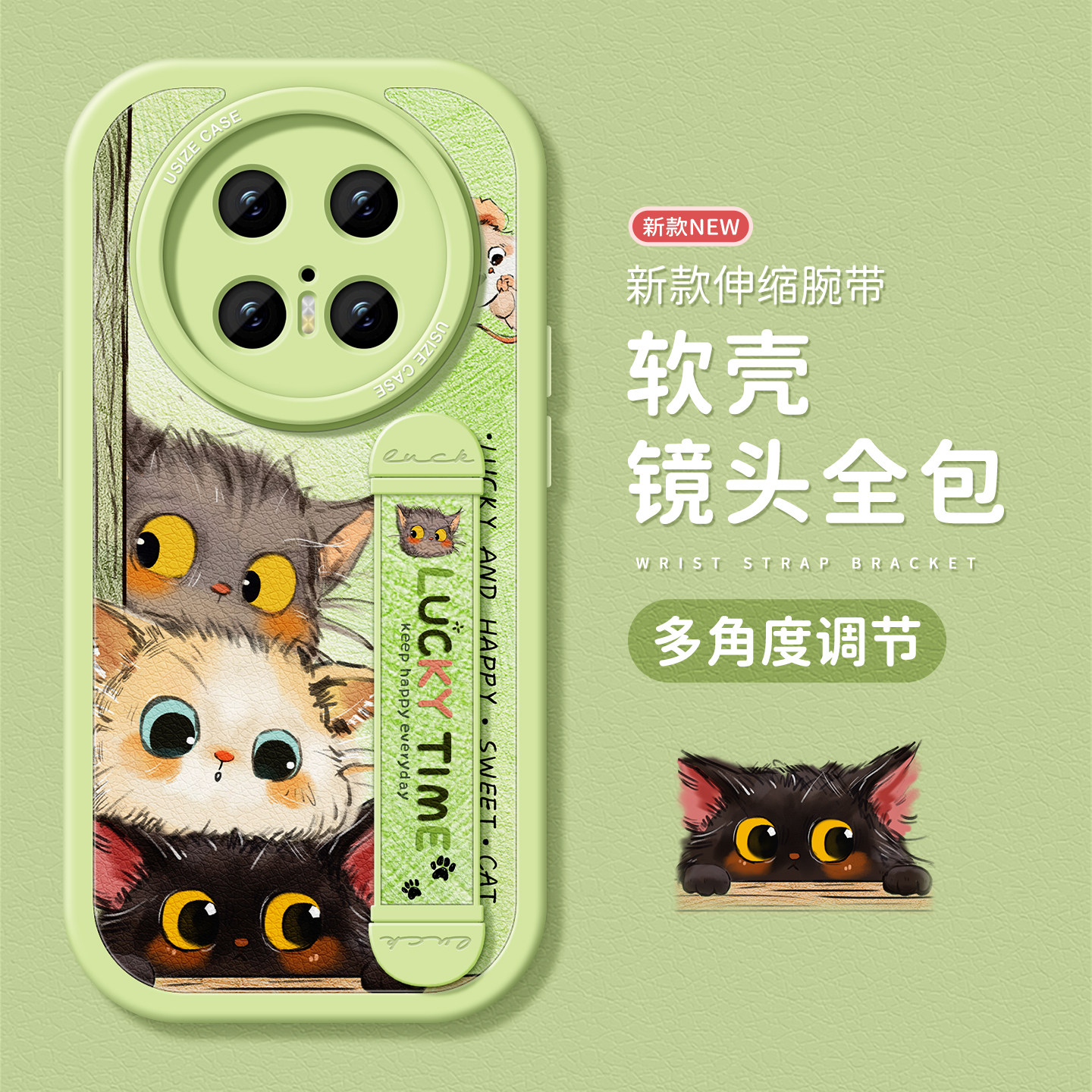 好奇小猫适用华为mate70手机壳新款mate40epro保护套30pro全包mate60硅胶女款腕带防摔pro软壳Meta支架70pro
