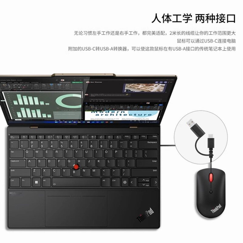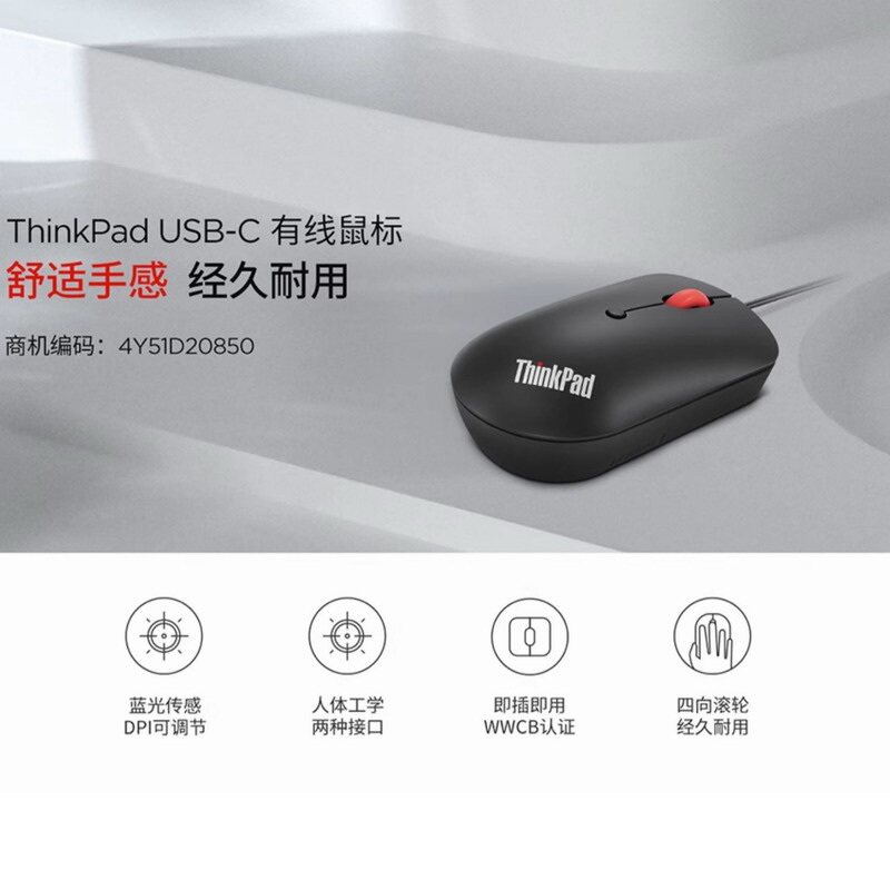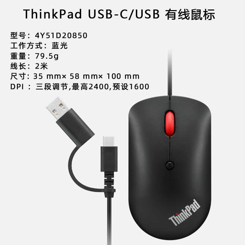 联想ThinkPad双接口USB-C/A有线蓝光鼠标红点滚轮电脑办公家用