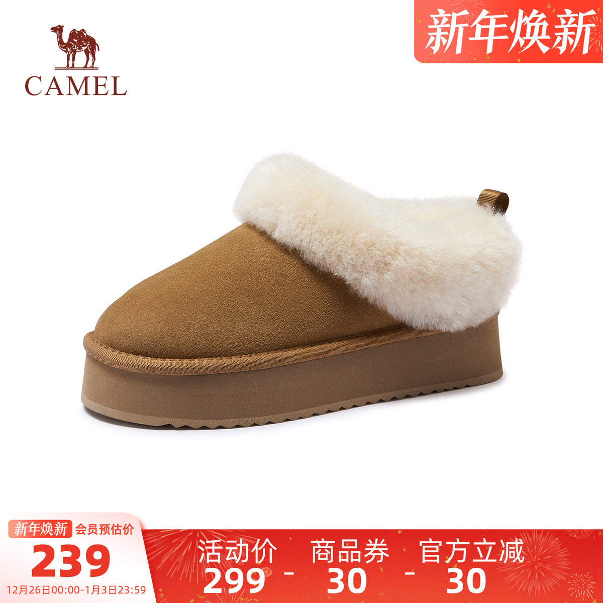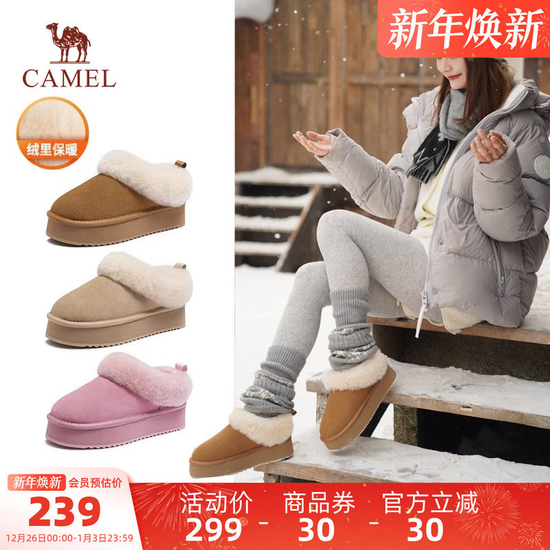 骆驼女鞋2025冬季新款保暖雪地靴女款加绒毛毛鞋厚底加厚东北棉鞋