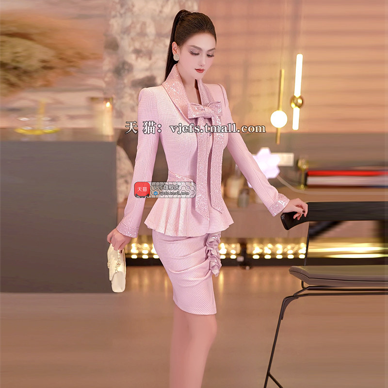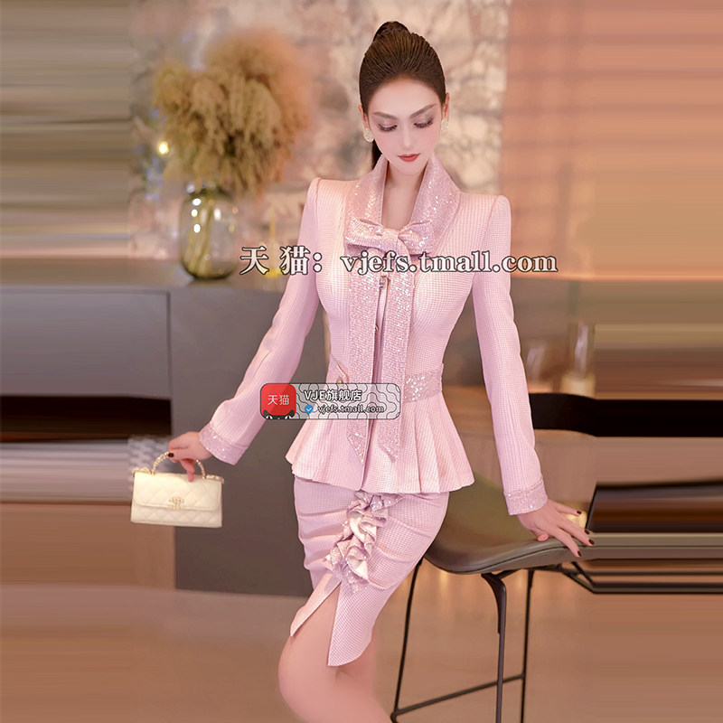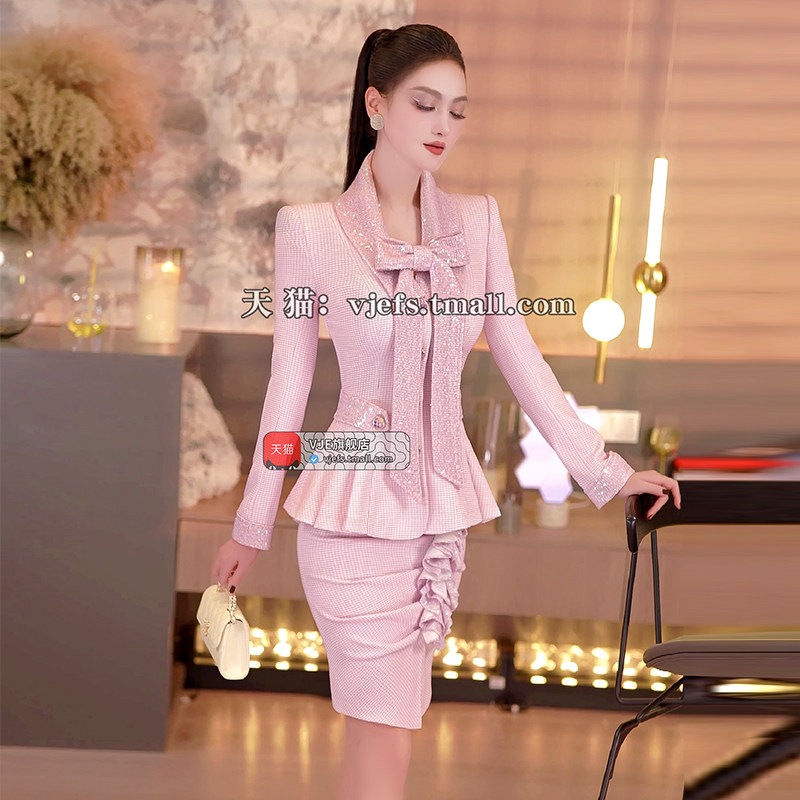 早春设计感蝴蝶结西装荷叶边包臀裙两件套2025新款小众别致OL套装