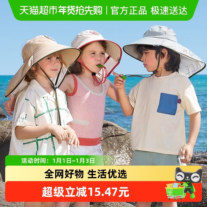 KK树儿童防晒帽夏季防紫外线遮阳帽男童女童太阳帽沙滩大帽檐