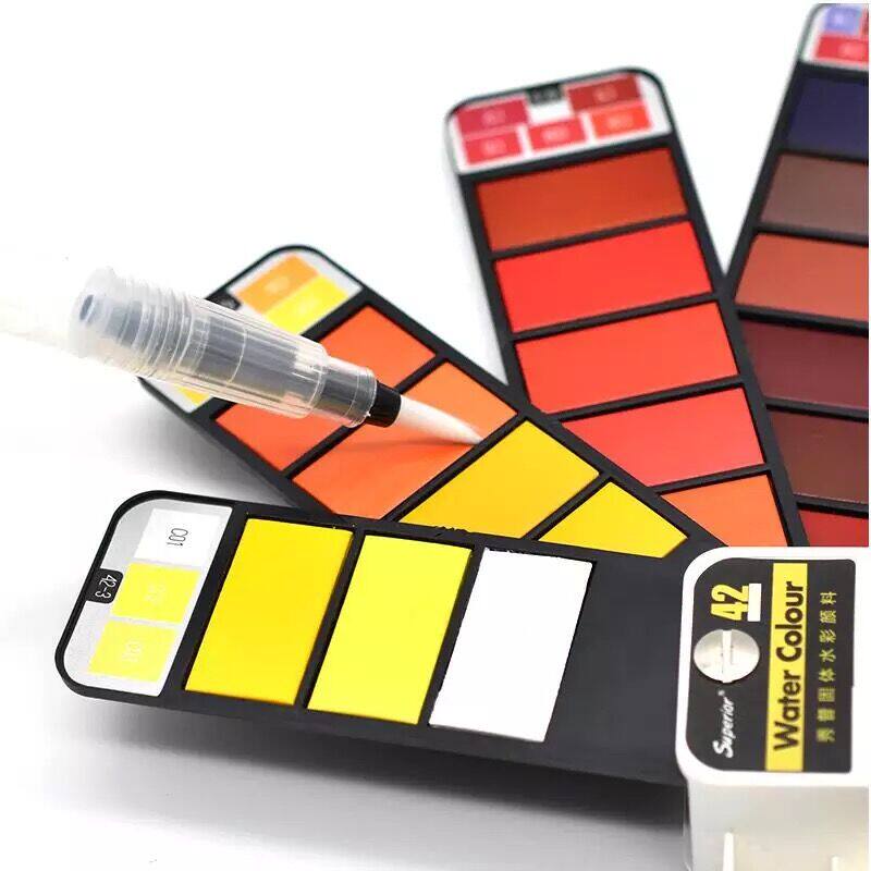 秀普颜料固体水彩扇形18色手绘粉饼颜料水彩42色透明水彩画颜料
