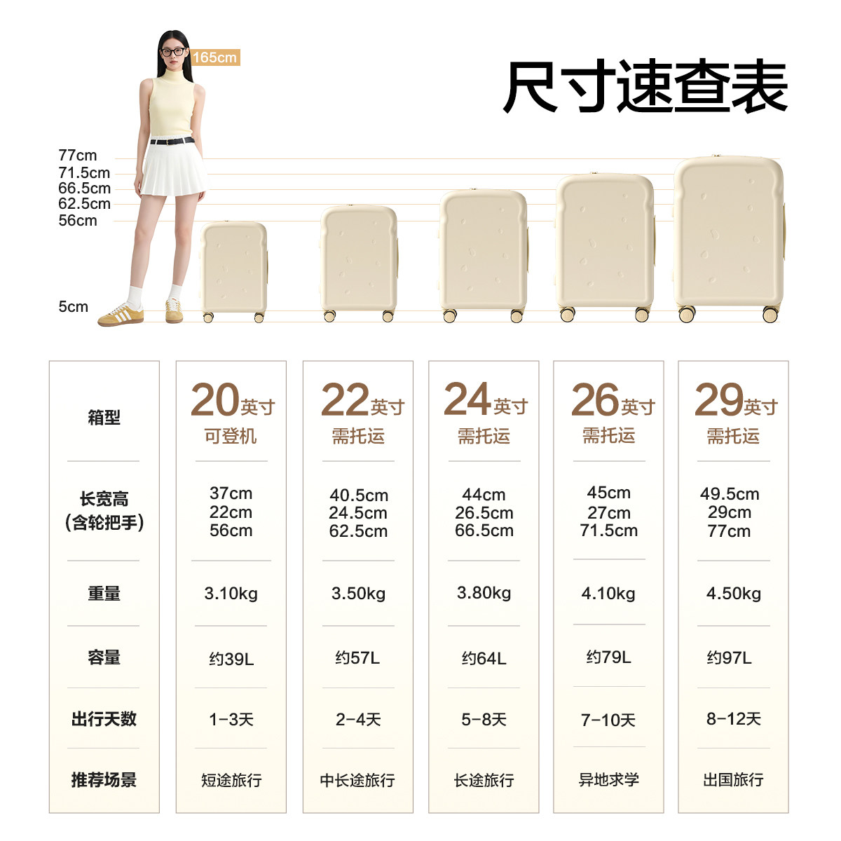 米熙高颜值品质登机20寸拉杆行李箱女大容量24结实小旅行箱子男26