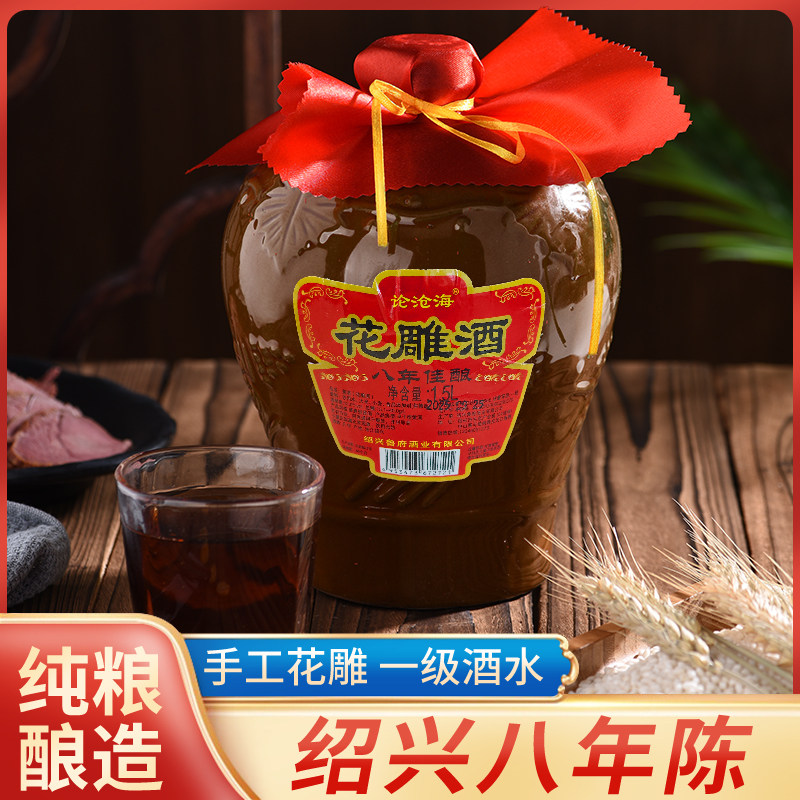 正宗绍兴黄酒八年陈花雕王1.5L坛装半甜型糯米酒善酿加饭酒老酒
