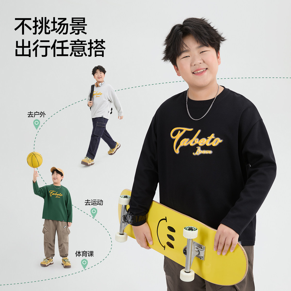 特步童装男童长袖T恤2025秋冬新款儿童纯棉上衣中大童打底衫秋装