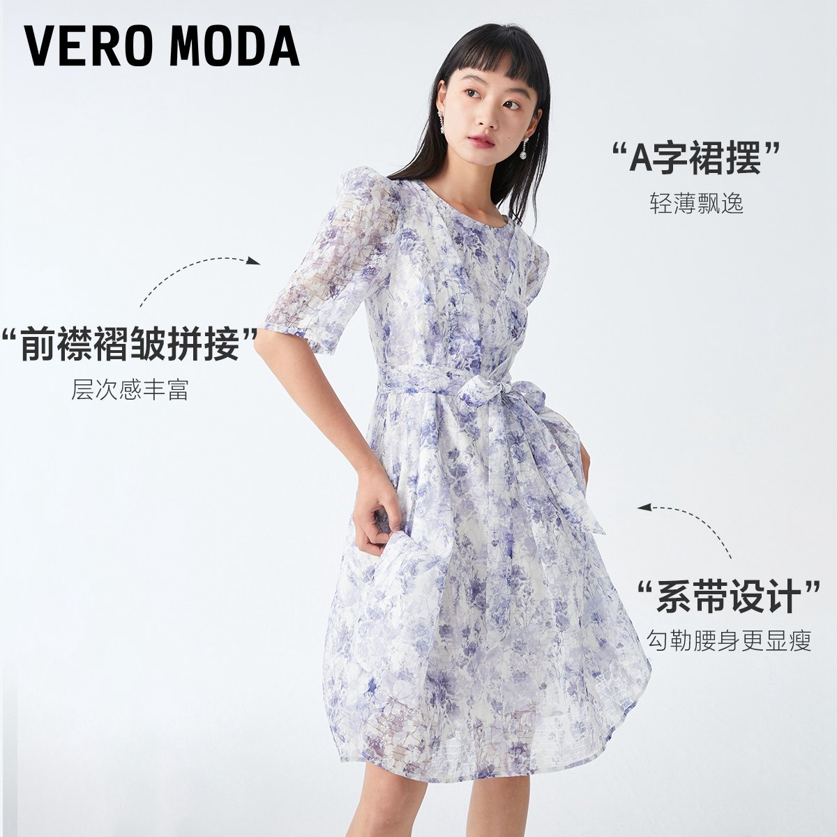 Vero Moda奥莱连衣裙子夏季清仓优雅气质甜美百搭印花浪漫纱裙女